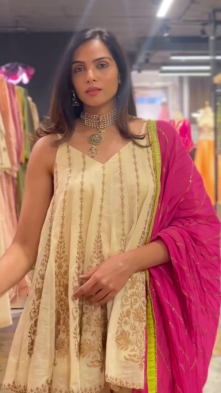 Color: Cream (top and sharara) with Hot Pink Dupatta
