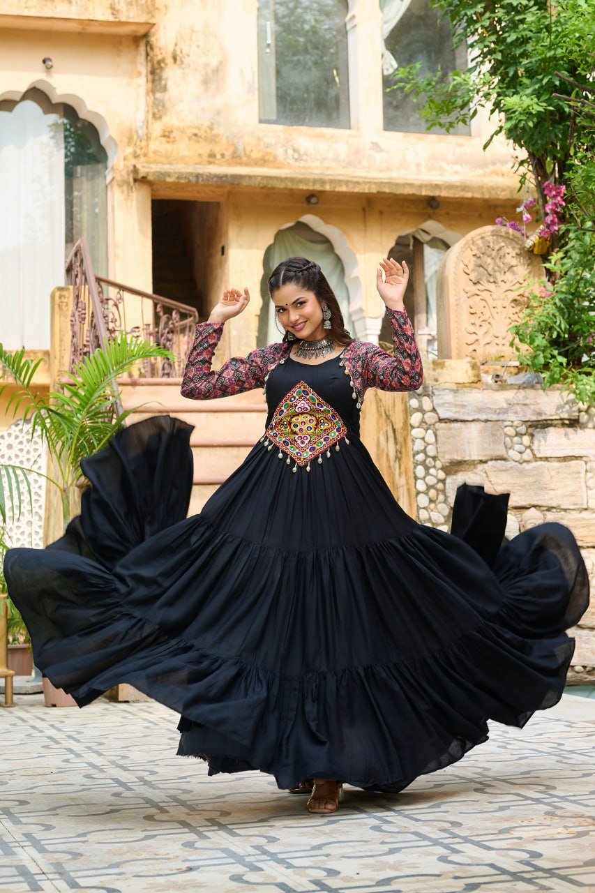 ???? Fabrics & Work :- 14 Kg Reyon With Kutchi Gamthi Embroidered Work & Cotton Print Work