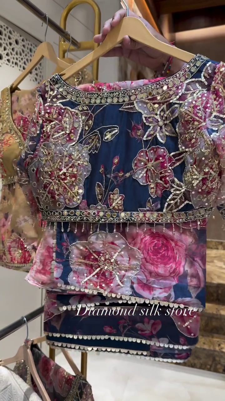 Floral Embroidered Organza Blouse – Diamond Silk Store Exclusive