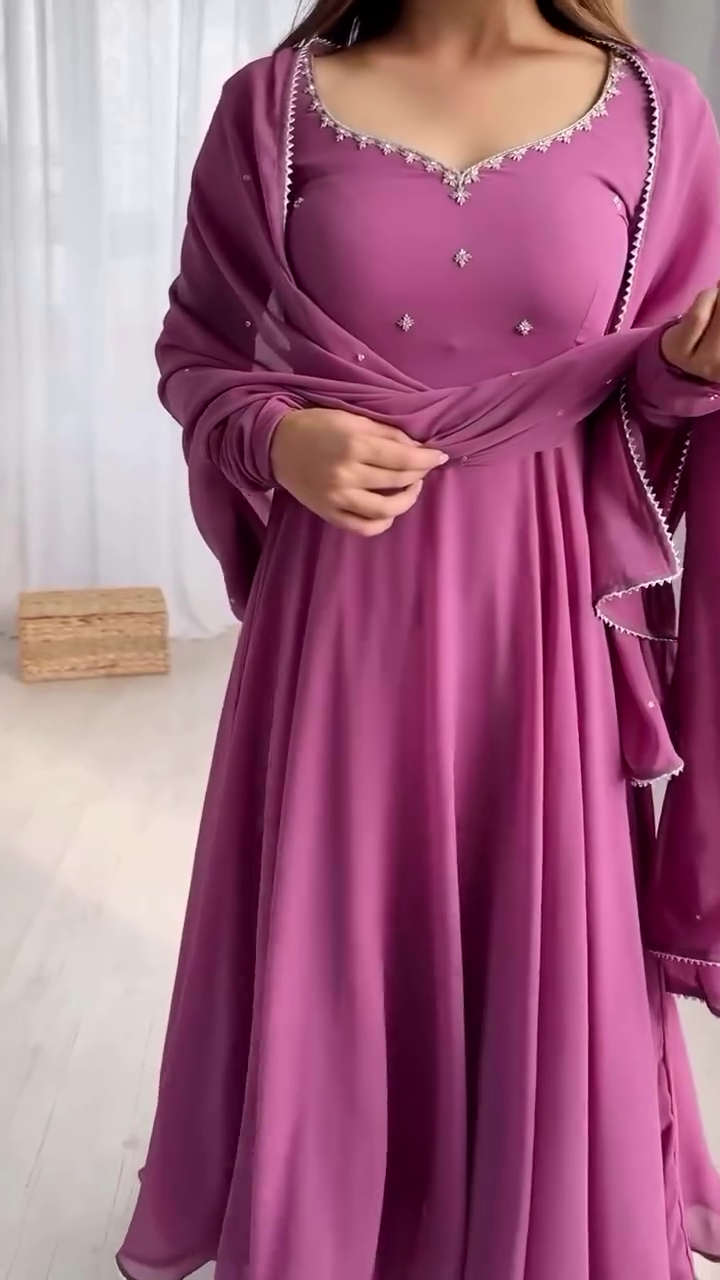 Title: Mauve Pink Flared Anarkali Gown with Hand Embellishment