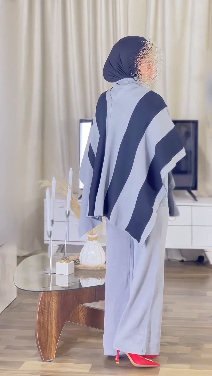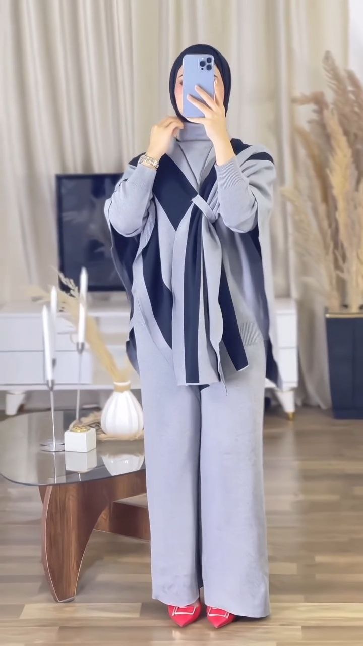 This modern modest co-ord set is crafted from a soft knit fabric that offers all-day comfort and effortless style. The minimal top and flowy wide-leg pants create a balanced silhouette, while the contrast shawl overlay adds a sophisticated layered look. Perfect for casual days, travel, or smart everyday wear, this versatile set blends elegance with ease and adapts seamlessly to multiple styling needs.