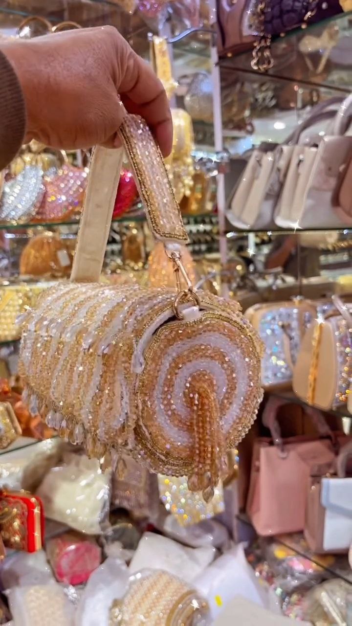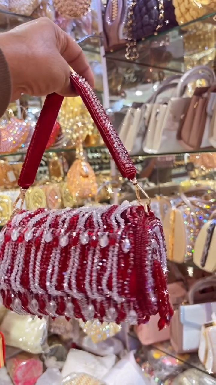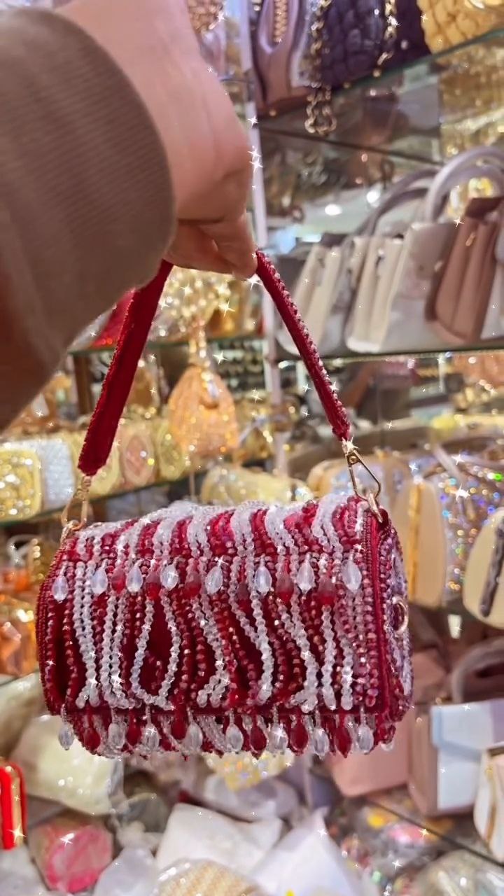This red and crystal beaded party clutch is designed to make a striking statement. Featuring intricate beadwork with shimmering crystal accents, it adds elegance and sparkle to any festive or evening look. The structured silhouette offers enough space for essentials such as a phone, cards, and makeup, while the sturdy top handle ensures comfortable carrying. Perfect for weddings, celebrations, and special occasions, this clutch blends glamour with functionality for a polished finishing touch.