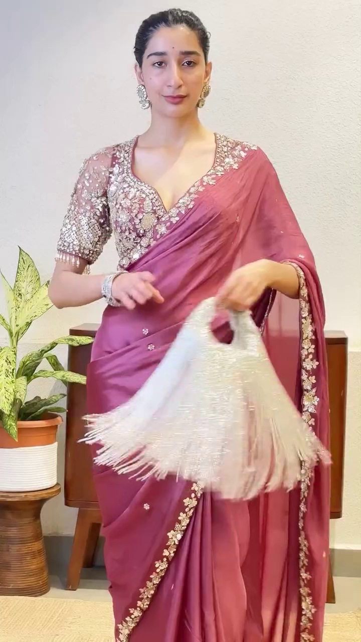 The last image gives a detailed look of the blouse piece that comes with this saree (The model is wearing a blouse from our in-house wardrobe)